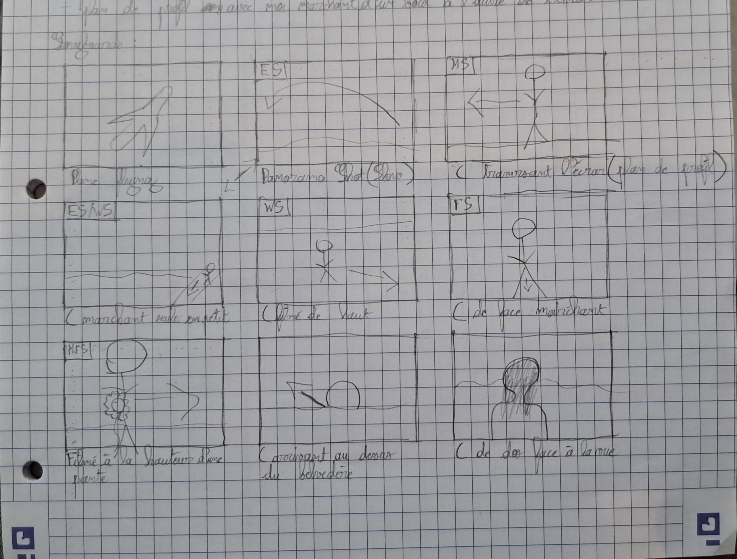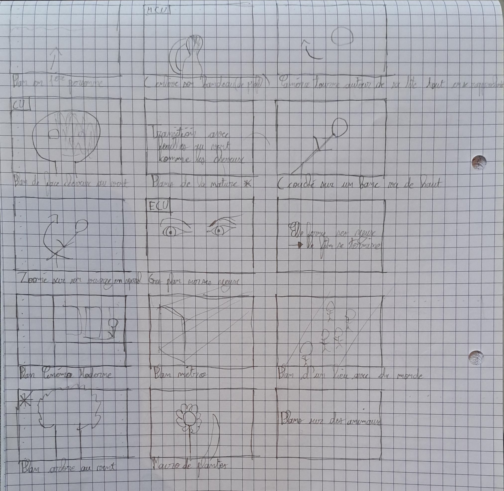 Avant de tourner ma vidéo, j’ai fait un storyboard pour imaginer mon histoire et les différents plans que je voulais.
