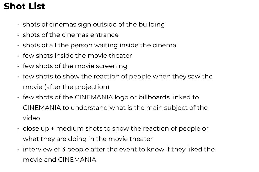 Avant de tourner ma vidéo, j’ai fait une liste de tous les plans que je voulais dans celle-ci.